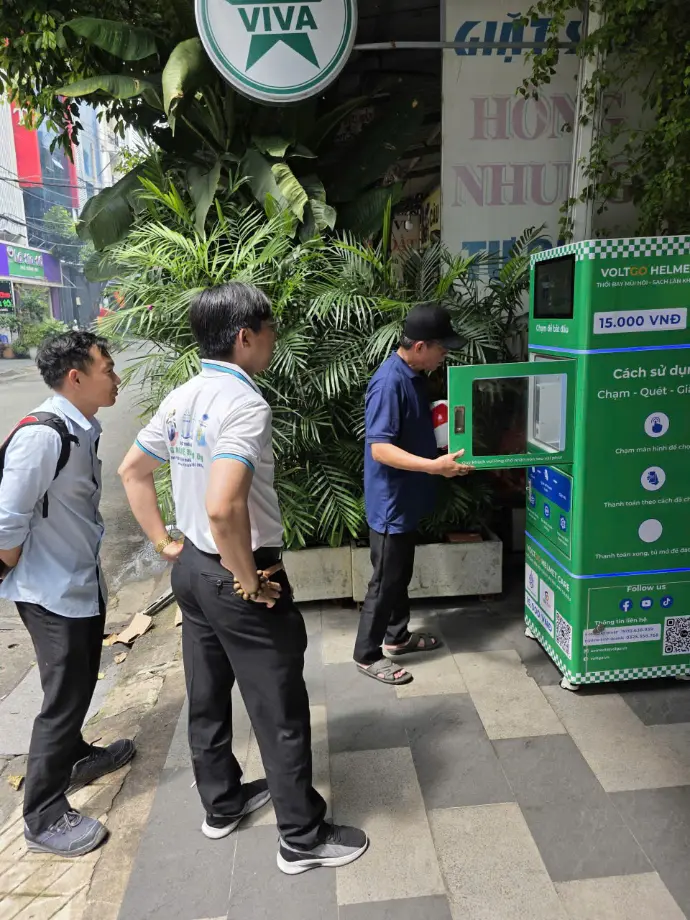 Hôm nay, hàng chục khách hàng đã được trải nghiệm hoàn toàn miễn phí dịch vụ giặt mũ bảo hiểm tại tủ giặt thông minh VoltGo.