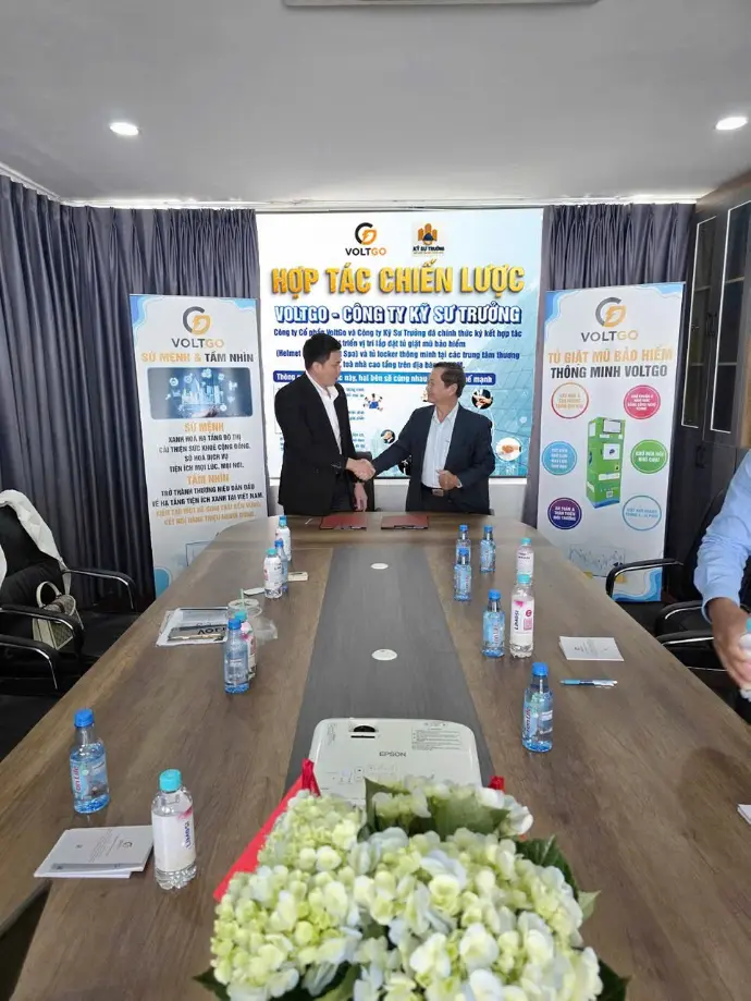 Công ty Cổ phần VoltGo và Công ty Kỹ Sư Trưởng đã chính thức ký kết hợp tác phát triển vị trí lắp đặt tủ giặt mũ bảo hiểm (Helmet Care/Helmet Spa) và tủ locker thông minh tại các trung tâm thương mại, toà nhà cao tầng trên địa bàn TP.HCM.